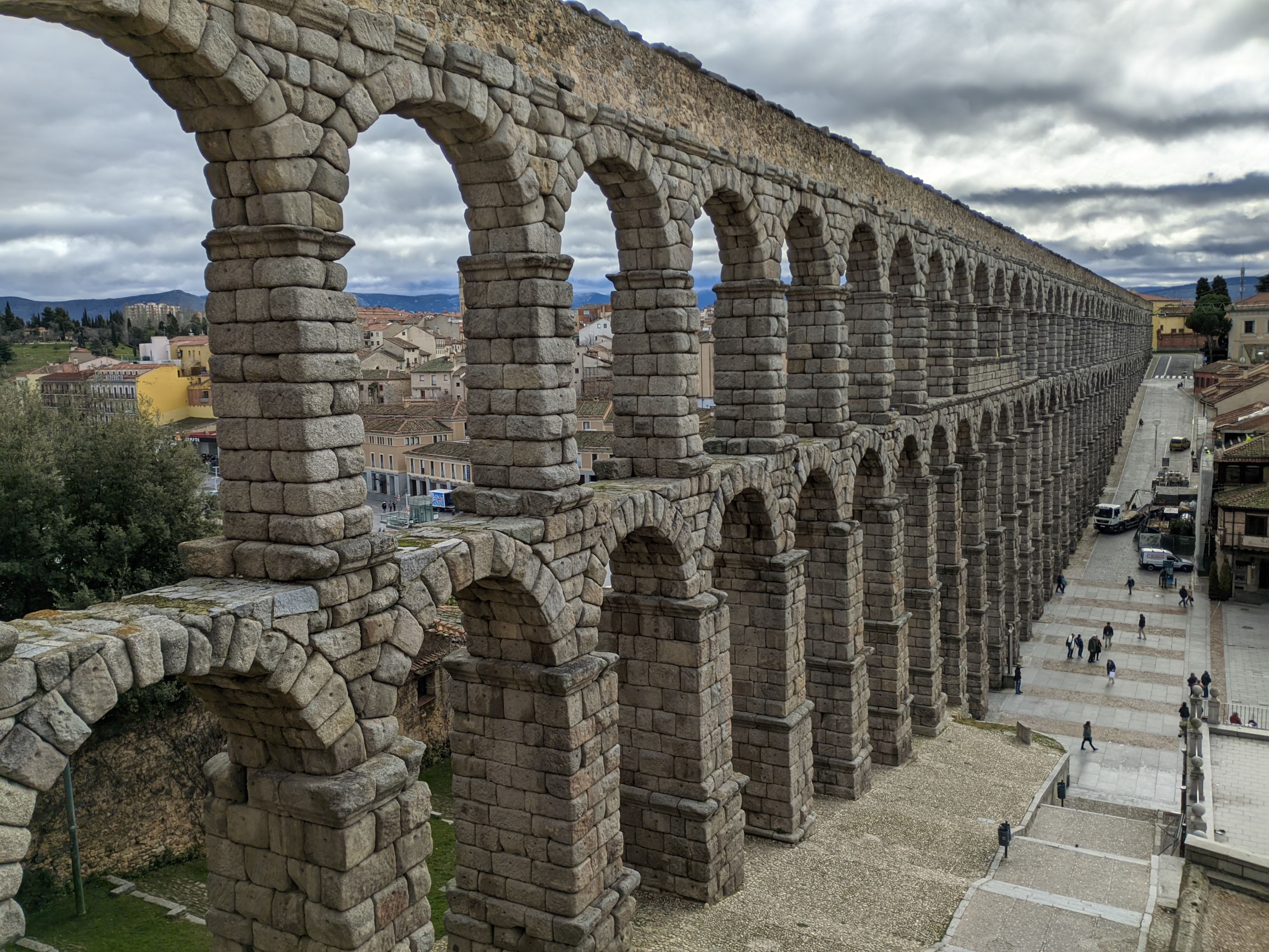 여행 전 사진과 유튜브로 세고비아 수도교의 모습을 보긴 했지만 직접 가서 본 수도교의 모습은 정말로 장관이었다. 무려 2천년 전에 이런 거대하고 아름다운 석조 구조물을 쌓았다는게 믿기지 않았다. 게다가 수도교의 건설 목적이 17km 정도 떨어진 곳에서 이 곳 세고비아까지 물을 끌어오기 위함(그래서 이름이 수도교)이었다니 당시 로마제국에는 이미 고도로 발달된 측량 기술과 축조 기술, 그리고 석공 기술이 존재했음이 분명하다.