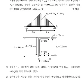 분류 전체보기 썸네일형 리스트형 토목구조기술사 117회 2교시 3번 토목구조기술사 117회 2교시 3번은 편심하중이 작용하는 단주의 중립축과 응력을 구하는 문제입니다. 학부때 배우는 재료역학 과목에서 유제 또는 연습문제로 흔히 등장하는 스타일인데 이런 문제가 토목구조기술사에 1교시도 아니고 2교시에 나오다니 조금 충격적(?)이긴 합니다. 다만 편심이 작용하는 단주의 응력에 대한 공식을 암기하고 있느냐 여부가 관건이긴 한데 수험생 중에서 이 응력 공식을 기억하는 사람이 많지 않아 의외의 변별력을 지닐지도 모르겠네요. 더보기 토목구조기술사 117회 3교시 5번 토목구조기술사 117회 3교시 5번 문제는 두 개의 서로 다른 H형강이 조립된 장주의 좌굴에 대한 해석입니다. 합성부재에 모양이 특이해서 조금 난해할 수 있는데 단면적과 단면2차 모멘트가 모두 주어졌기 때문에 합성단면의 단면2차 모멘트를 구하는 것은 방향만 유의하면 어렵지 않게 구할 수 있습니다. 더보기 토목구조기술사 117회 2교시 4번 토목구조기술사 117회 2교시 4번 문제는 한계상태설계법에 의한 철근콘크리트 기둥의 해석입니다. 그동안 콘크리트구조기준에 의한 강도설계법으로 해석하는 철근콘크리트 기둥 문제는 다수 출제된 적이 있는데 한계상태법으로 해석하는 철근콘크리트 기둥 문제는 처음으로 출제되었네요. 참고로 도로교설계기준 한계상태설계법(2016)에서 철근의 재료계수(Φs)는 0.90로 변경되었습니다. 더보기 기술사용 필기구에 관한 고찰1 다른 자격시험과 달리 100분씩 4교시 동안 쉴새없이 답안지를 써내려가야 하는 기술사 시험의 특성상 필기구의 선택은 중요한 요소라고 볼 수 있다. 기술사 이외에 논술 답안을 제출하는 시험이 고등고시 2차 시험인데 합격자의 합격수기에 어느 필기구를 썼는지까지 거론될 정도로 수험생들 사이의 관심분야 가운데 하나다. 나 역시 그동안 무수히 많은 종류의 필기구를 써왔는데 솔직히 아직까지 '이거다' 하는 정도의 만족할만한 펜을 찾지는 못하였다. 여전히 나에게 맞는 펜이 어디엔가 있을것이란 희망의 끈을 놓지 않도 가끔 생각날때마다 새로운 혹은 몰랐던 제품에 대한 관심을 갖고 사용해보는 단계다. 비슷한 고민을 해봤던 수험생이라면 흥미롭게 느낄만한 기술사 시험용 필기구에 관해 이야기 해보고자 한다. 공부 초창기에는 필.. 더보기 2018년도 국가공무원 5급(기술) 공개경쟁채용 제2차시험 재료역학 제1문 2018년도 국가공무원 5급(기술) 공개경쟁채용 제2차시험 재료역학 제1문은 평면변형률 문제입니다. 예전에도 언급한바 있지만 구조기술사와 다르게 기술고시에서 평면응력 및 평면변형률 문제는 거의 매년 한문제 이상 출제될 정도로 비중이 높습니다. 그중에서도 상대적으로 평면응력 문제가 자주 출제되는데 이 문제는 평면변형률에 관한 문제입니다. 더보기 2018년도 국가공무원 5급(기술) 공개경쟁채용 제2차시험 구조역학 제1문 2018년도 국가공무원 5급(기술) 공개경쟁채용 제2차시험 구조역학 제1문은 합성봉의 비틀림에 관한 문제입니다. 합성구조를 해석하는 방법은 다양하지만 개인적으로는 변형일치법을 가장 선호합니다. 더보기 2018년도 국가공무원 5급(기술) 공개경쟁채용 제2차시험 건축구조학 제3문 2018년도 국가공무원 5급(기술) 공개경쟁채용 제2차시험 건축구조학 제3문은 이등변삼각형 분포하중이 작용하는 철근콘크리트 보의 설계휨강도에 관한 문제입니다. 단철근보와 복철근보 배근시에 달라지는 설계휨강도를 통해 압축철근의 배근효과를 확인할 수 있습니다. 더보기 2018년도 국가공무원 5급(기술) 공개경쟁채용 제2차시험 건축구조학 제1문 2018년도 국가공무원 5급(기술) 공개경쟁채용 제2차시험 건축구조학 제1문은 변단면 단순보의 변형에너지에 관한 문제입니다. 집중하중이 보의 중앙점이 아닌 임의점에 작용하기 때문에 미지수가 많아지고 계산이 조금 복잡합니다만 문자연산이 가능한 계산기로는 간단하게 풀이할 수 있습니다. 더보기 이전 1 ··· 11 12 13 14 15 16 17 ··· 51 다음