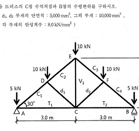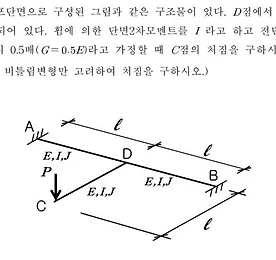 분류 전체보기 썸네일형 리스트형 건축구조기술사 104회 3교시 1번 (2014. 9. 4.) 건축구조기술사 104회 3교시 1번 문제는 정정 원형 캔틸레버에 하중이 작용할때 변위를 구하는 문제입니다. 보통의 경우 하중이 작용하는 방향의 변위만 물어보는데 이 문제는 하중이 작용하는 수직변위 뿐만 아니라 수평변위까지도 구해야 합니다. 수직변위만 구하는 문제하면 카스틸리아노 제2정리를 이용하면 간단히 해결할 수 있지만 수평변위를 구할수 없기 때문에 가상힘의 원리를 이용하여 한번에 두가지 변위를 계산하는 방법을 취했습니다. 덧붙임 : 풀이 마지막에 수평변위와 수직변위가 뒤바뀌었습니다. 당연히 결과도 바뀝니다. 더보기 건축구조기술사 104회 2교시 6번 (2014. 8. 28.) 이번에 치뤄진 건축구조기술사 104회 문제를 다운받아 봤는데 간단히 총평을 하자면 굉장히 신선하고 놀라웠습니다. 역학분야 문제는 틀에 박힌 문제가 아닌 매우 참신하고 새로운 문제였는데, 그렇다고 지저분한 스타일의 문제도 아니고 마치 기술고시 출제위원이 낸게 아닌가 하는 생각이 들 정도였습니다. 건축구조기술사 104회 2교시 6번 문제는 정팔면체로 이루어진 공간트러스의 해석에 관한 문제입니다. 이 문제 또한 그런 류의 대표적인 문제중 하나라고 생각됩니다. 입체(공간)트러스 문제는 그동안 토목구조기술사에서 몇차례 출제가 된 적이 있었습니다만 기존의 입체트러스 해석 문제와는 달리 이 문제는 정팔면체이고 하중도 위아래 동일하게 작용하기 때문에 대칭성을 이용하여 풀이하는 것이 핵심이라.. 더보기 건축구조기술사 103회 4교시 1번 (2014. 6. 3.) 건축구조기술사 103회 4교시 1번 문제는 입체 그리드 구조물의 처짐에 관한 문제입니다. 그리드 구조물은 토목구조건 건축구조건 잊혀질만 하면 한번씩 등장하는 문제인데요. 휨에 대한 것 뿐만 아니라 비틀림에 대한 고려까지 해야하므로 조금 복잡합니다. 주어진 문제의 구조물은 3차 부정정인데 대칭형태라 대칭모델링하여 해석을 했었습니다만 비틀림이 작용하는 형태라 아는 지식에서 대칭모델링을 하면 결과가 틀리게 나와서 전체 구조를 해석하였습니다. 비틀림이 작용하는 경우 대칭 모델링을 어떻게 해야하는지 모르겠습니다. 그리고 추가적으로 처짐 공식만으로도 풀이를 해봤는데 매트릭스법과는 달리 아주 간단하게 풀립니다. 더보기 건축구조기술사 101회 2교시 3번 (2014. 4. 3.) 어느분이 이 문제에 대한 질문을 하셔서 풀이를 올립니다. 건축구조기술사 101회 2교시 3번 문제인데 강도가 다른 재료를 이용한 합성단면에 관한 내용입니다. 일단 4개의 목재는 그림과 같이 세로로 접합하는 것이 아닌 가로로 접합해야 하구요. 조건에서 사용 가능한 집성재 보의 최대 높이는 300mm로 제한하고 있기 때문에 딱 4개의 목재를 가로로 쌓으면 300×300mm의 정사각형 단면이 나옵니다. 목재의 접착제가 충분한 강도를 가지는 것으로 가정했으니 완전부착(합성)이라는 의미가 되고 최대 휨모멘트는 중앙지간에, 최대 전단력은 양쪽 지점에서 발생합니다. 우선 최대 휨모멘트 값을 가지고 인장 및 압축강도에 대한 검토를 했는데요. 단면이 대칭이므로 상연의 압축응력과 하연의 인장응력은.. 더보기 건축구조기술사 102회 2교시 1번 (2014. 2. 26.) 건축구조기술사 102회 2교시 1번 문제는 독특한 형태의 구조물 해석입니다. 라멘구조물이기는 한데 보 부분의 강성이 무한대인 강체라 어렵다면 어렵고, 반대로 강체이기 때문에 쉽게 풀리기도 합니다. 다만 눈에 익은 형태가 아니라는거죠. 매트릭스 변위법으로 풀이를 했는데 보 부분이 강체라 자유도 수도 감소하고 부재변형 매트릭스도 감소해서 전체 매트릭스의 크기는 오히려 줄어드는 장점이 생기는군요. 참고로 토목구조기술사 62회 1교시 12번에서 유사한 구조물의 형태가 출제된 적이 있고 lupin66님이 만드신 매트릭스 구조해석 노트 예제 4.6-1에도 풀이가 있습니다. - 토목구조기술사 62회 1교시 12번 문제 - 더보기 건축구조기술사 102회 3교시 3번 (2014. 2. 25.) 건축구조기술사 102회 3교시 3번은 좀처럼 보기 힘든 독특한 문제였습니다. 타원에 내접하는 사각형의 단면중 단면2차모멘트와 단면계수가 최대가 되는 단면형상을 구하는 문제인데 생소해서 그렇지 계산기만 받쳐준다면 크게 어려움 없이 풀이가 가능합니다. 처음에 문제를 보고선 아주 오래전(20여년전) 고등학교때 수학2에서 배우는 타원의 방정식에서 최대값을 구하는 문제가 아닐까, 즉 공통수학에서 등장하는 산술평균과 기하평균을 이용한 최대값 문제같다라는 생각이 들었지만 막상 풀어보니 그런 문제는 아니더라구요. 물론 역학과 거리가 먼 산술-기하를 이용한 최대값 문제라면 그건 수학 문제이지 더이상 역학 문제가 아니긴 합니다. ㅎㅎㅎ 고등학교때 수학공부를 열심히(?) 한 탓인지 쓸데없는 것까지.. 더보기 건축구조기술사 101회 2교시 2번 (2013. 8. 20.) 건축구조기술사 101회 2교시 2번 문제는 ㄷ자 형태의 캔틸레버 프레임의 자유단 처짐을 구하는 문제입니다. 평범한 문제라 풀이를 올릴까 말까 하다가 대부분이 단위하중법 내지는 가상힘의 원리(둘다 결국은 동일한 풀이)