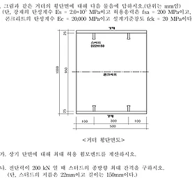 분류 전체보기 썸네일형 리스트형 건축구조기술사 99회 2교시 5번 (2013. 4. 23.) 건축구조기술사 99회 2교시 5번 문제는 토목구조기술사 97회 4교시 4번에 출제된 적이 있는 변형률 적합조건을 이용한 PSC의 설계휨강도 계산문제입니다. 아마도 대한건축학회에서 펴낸 콘크리트 구조설계기준 건축구조물 설계예제집에 있는 문제를 참고하여 낸 듯한데 문제에 주어진 긴장재 단면적 Asp는 강연선 1개의 단면적이므로 그림에 나온것과 같이 6개로 보고 풀어야 맞는것 같습니다. (처음에 그냥 99㎟로 풀었더니 결과가 계속 이상하게 나오더라구요.) 이 문제의 경우 긴장재 이외에 별도의 철근이나 비긴장 긴장재가 존재하지 않기 때문에 상대적으로 풀이가 간단합니다. 더보기 건축구조기술사 99회 3교시 5번 (2013. 4. 17.) 건축구조기술사 99회 3교시 5번 문제는 절대최대휨모멘트를 이용한 철근콘크리트 단면의 휨설계 문제입니다. 절대최대휨모멘트는 재료역학을 배울때 상당히 중요한 개념으로 배웠고 기사나 공무원시험 같이 선다형 필기시험류에는 단골로 나오는 문제라 예전에 한참 공부하던 시절에 발생위치나 값을 공식처럼 외우고 있었는데 기술사에서는 이유를 모르겠지만 거의 나오지 않아 잊고 지냈습니다. 근래 몇년간 구조기술사 시험에서 절대최대휨모멘트와 관련한 문제는 처음이지 않나 싶을 정도입니다. 덕분에 그 개념을 까먹고 지내다 오랜만에 생각하며 문제를 풀다보니 발생위치는 분명 큰 하중 아래인데 하중의 중점과 보의 중앙이 일치할 때 라고 판단해 풀었더라구요. 다시 책을 찾아보니 절대최대휨모멘트의 발생위치는 ".. 더보기 건축구조기술사 99회 3교시 3번 (2013. 2. 22.) 건축구조기술사 99회 문제중 가장 인상깊었던 문제입니다. 토목, 건축을 막론하고 최근 몇회간 시험에 출제되는 소성해석 관련 문제를 보면 과거에 출제되던 전형적인 형식에서 벗어나 원리를 정확히 알지 못하면 풀 수 없는 기술고시 스타일로 나오고 유형도 상당히 다양화된 느낌입니다. 대부분의 수험생들은 아마도 이 문제를 큰 의미를 부여하지 않고 풀었으리라 생각합니다. 물론 보 파괴기구와 기둥 파괴기구는 특별할 것이 없이 기계적으로 풀이할 수준입니다. 관건은 조합 파괴기구인데 실제로 건축구조기술사 카페에 올라온 글을 보니 댓글로 설왕설래 하기는 했습니다만 대부분의 수험생들이 보 파괴기구와 마찬가지로 중간지점에 소성힌지가 발생하는 것으로 풀이를 한 것 같더라구요. 제 생각에는 이 문제의 .. 더보기 건축구조기술사 98회 4교시 4번 (2012. 8. 28.) 건축구조기술사 98회 4교시 4번 문제는 강성이 다른 양단 고정보의 재단모멘트와 처짐을 구하는 문제입니다. 크게 어려운 문제는 아니지만 강성과 보의 길이가 딱 떨어지는 값이 아니기 때문에 조금 지저분하게 나오네요. 대칭이므로 대칭단면으로 모델링하여 좀더 간단하게 풀었습니다. 더보기 건축구조기술사 96회 3교시 3번 (2012. 3. 7.) 이 문제의 첫인상은 좌굴하중을 산정하는 안정론 문제이고 비록 변단면이지만 대칭형태라 풀이가 그리 어렵지 않을 것이라고 생각했는데 알고보니 우물안 개구리의 허세였습니다. 아무리 찾아봐도 제가 가지고 있는 안정론 교재 2권(김상식, Chen)에 이런 형태는 없더라구요. 사실 제가 학부 출신으로 가방끈이 짧아 대학원에서 배우는 안정론이란 과목 자체도 몰랐었다가 기술사 공부하며 알음알음으로 뒤늦게 알게 되어 책을 구입하고 필요한 부분만 주먹구구식으로 혼자 공부하다보니 간혹 출제되는 간단한 보-기둥의 좌굴하중 산정 정도만 풀수 있는 수준인데요. 우연히 건축구조기술사 카페에 이 문제에 대한 질문글을 봤는데 Chajes의 책에 똑같은 문제가 있다는 댓글이 달려 미친듯이 몇시간을 구글링 하다가.. 더보기 건축구조기술사 96회 2교시 2번 (2012. 2. 28.) 96회 건축구조기술사 문제를 다운받아서 보니 몇몇 참신한 문제들이 눈에 띄네요. 에너지법을 이용해서 휨모멘트에 의한 처짐과 전단에 의한 처짐을 비교하는 문제인데 일반적으로 전단에 의한 처짐은 휨에 의한 처짐에 비해 무시할만큼 작기 때문에 휨에 의한 처짐만 고려한다는 사실은 조금만 역학에 대해 공부를 하면 알 수 있는 내용입니다. 다만 상식적으로 알고 있는 내용을 이렇게 문제를 통해 증명하게끔 했다는 발상이 조금 신선하다고 느껴집니다. 그나저나 토목구조도 그렇고 건축구조도 그렇고 이번 96회는 계산과 논술이 짬뽕되어 나오는 문제가 많이 출제되었네요. 앞으로 이런 유형의 문제가 유행하려는 건지... 더보기 토목구조기술사 113회 2교시 4번 (2017. 8. 18.) 토목구조기술사 113회 2교시 4번 문제는 콘크리트의 사용성과 내구성 중 피로의 검토에 관한 문제입니다. 과거에 비슷한 문제가 출제되었고 정리한 적이 있는 문제였는데 시험장에서 이 문제를 받아드는 순간 솔직히 반가운 마음보다 짜증이 앞섰습니다. 계산과정이 복잡하거나 어렵지 않은 문제임에도 불구하고 이 문제를 보는 순간 짜증이 확 밀려왔던 이유는 지난 112회 토목구조기술사 시험을 본 뒤 개인적으로 철근콘크리트 관련 문제가 콘크리트구조기준(2012)에서 도로교설계기준(