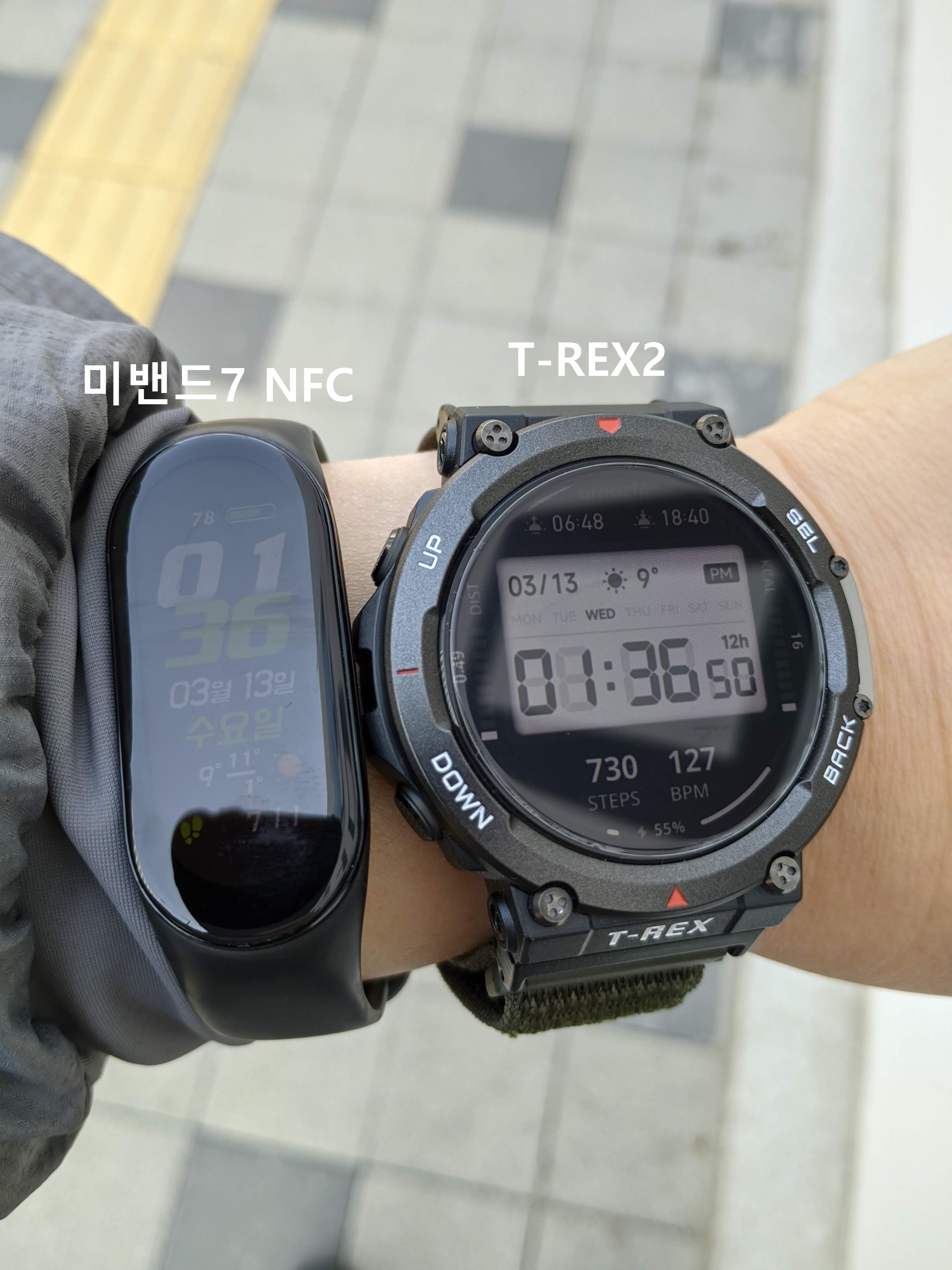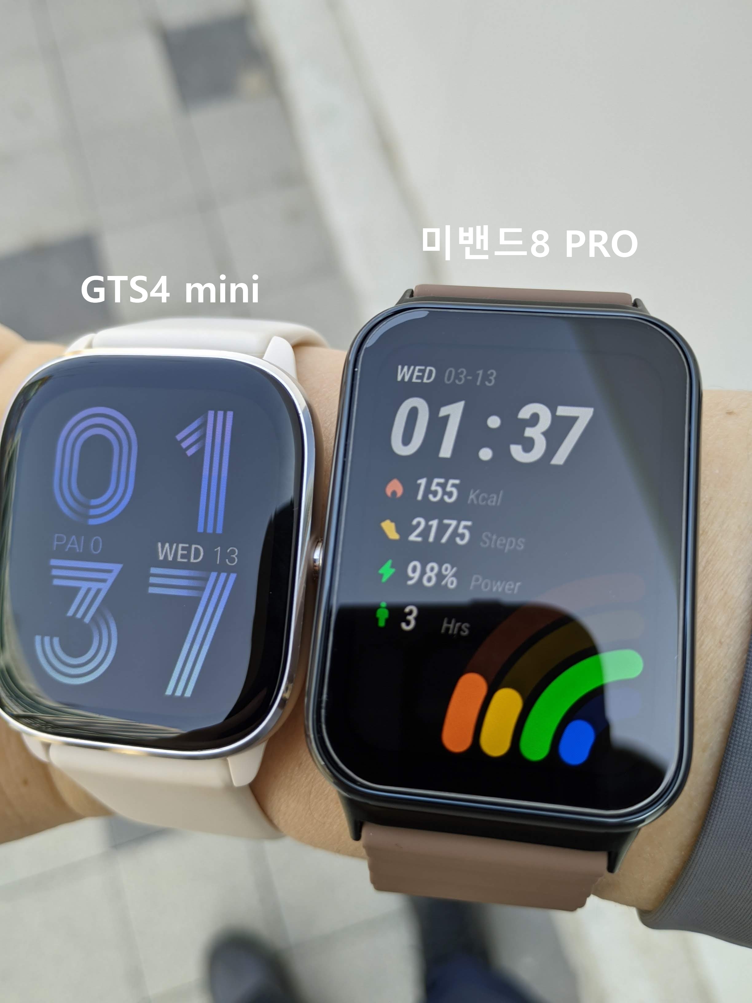 | 구분 | 미밴드7 NFC | GTS4 mini | T-REX2 | 미밴드8 PRO |