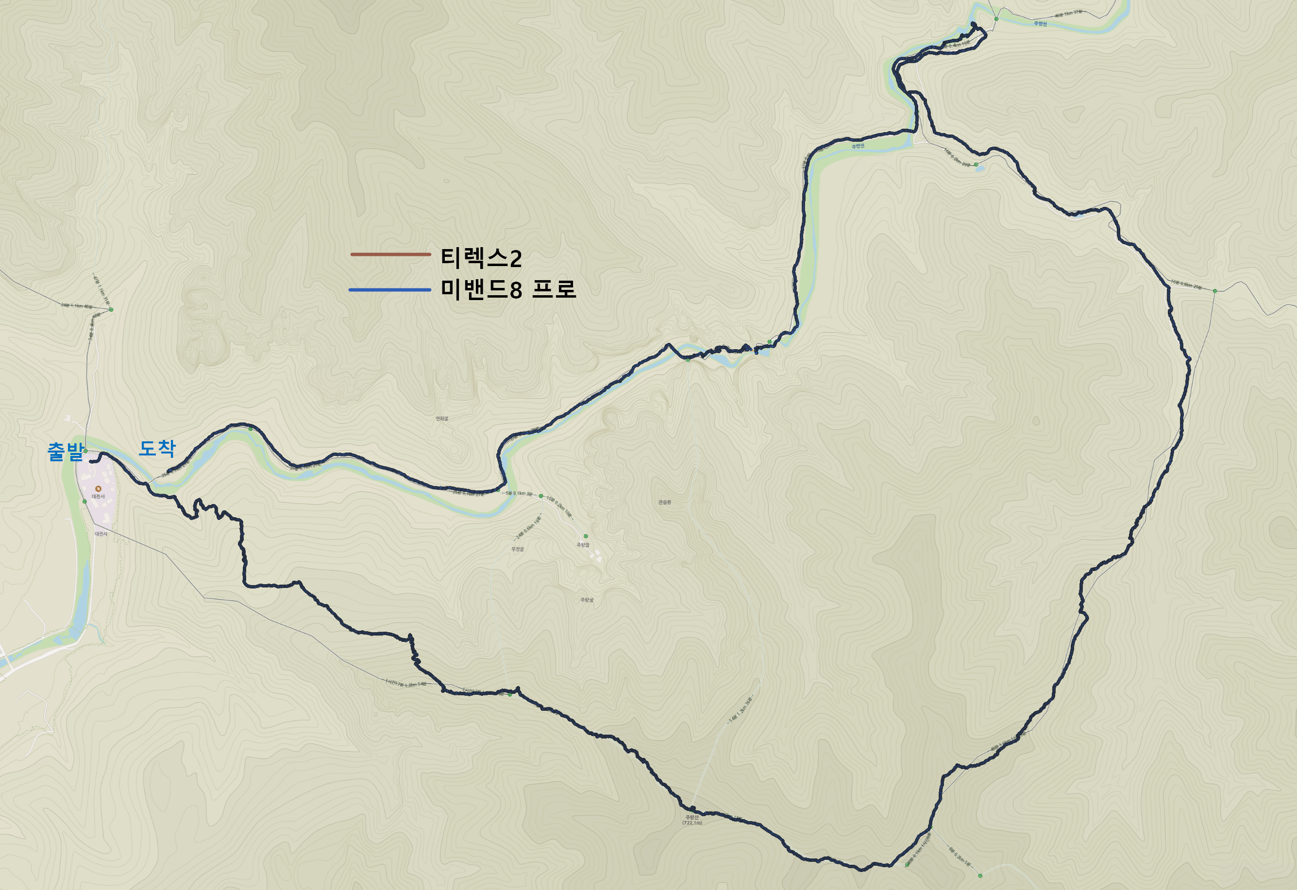 이제 다른 날, 다른 장소에서 측정한 T-REX2와 미밴드8 PRO를 비교해 보겠습니다.