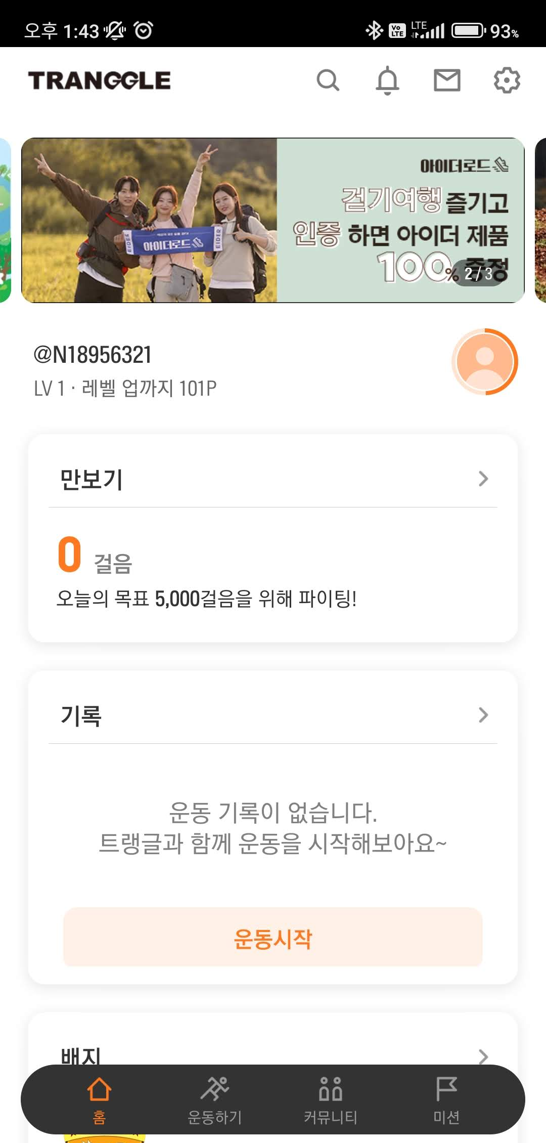 다음으로 동시에 실행시킨 핸드폰 등산 어플입니다. 위에서부터 램블러, 트랭글, 산길샘 순으로 이 3가지 어플이 가장 보편적이고 인기있는 등산 어플로 알고 있으며, 이동 경로를 GPX 파일로 만들 수 있기 때문에 선정하였습니다.