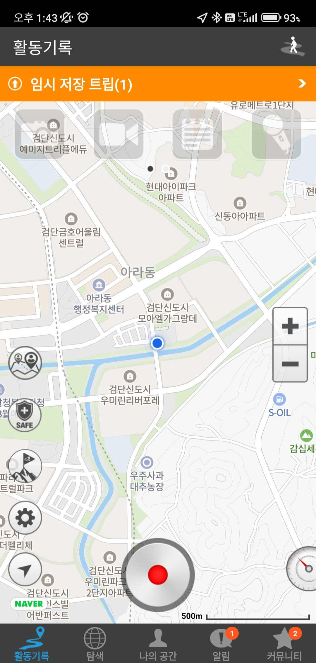 집근처 자주 산책하는 경로에서 한가지 실험을 진행하였습니다. 가지고 있는 웨어러블 기기와 핸드폰 등산 어플을 동시에 실행시켜 그것을 비교한 것입니다.